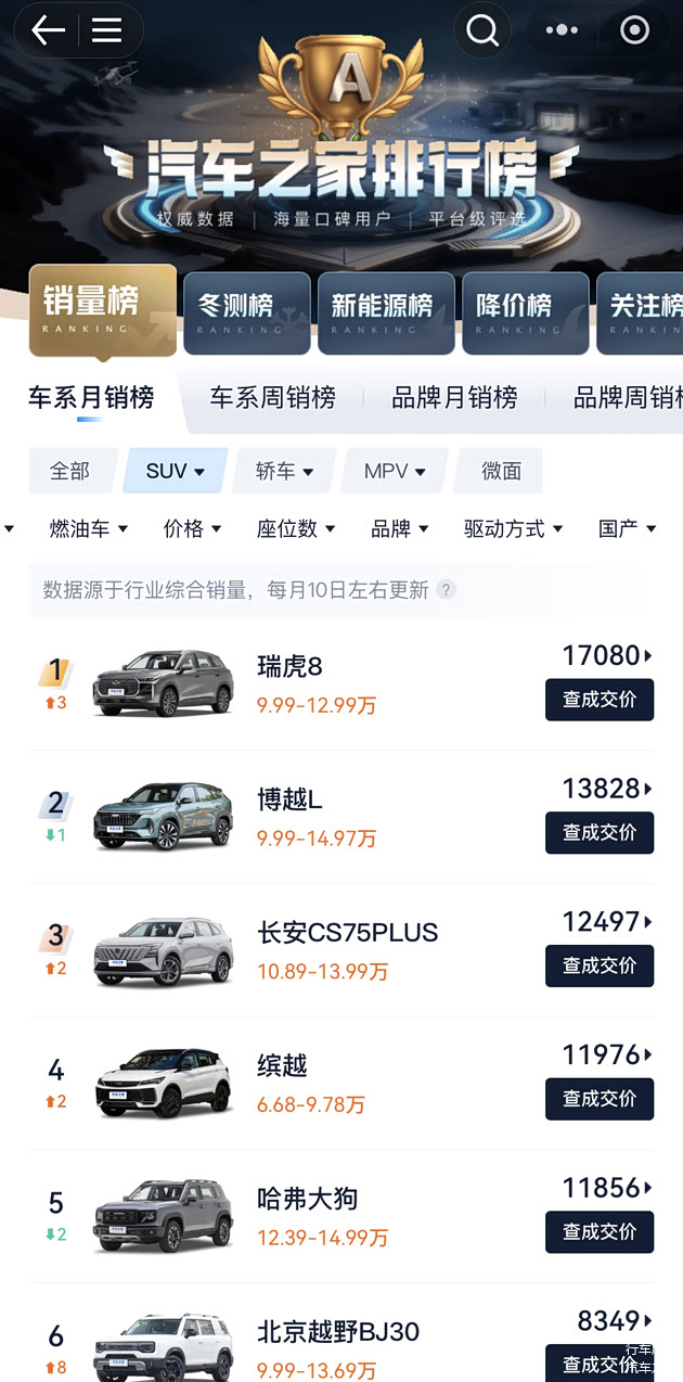 近日,奇瑞瑞虎8交出亮眼答卷:2025年12月销售17080台,强势登顶自主品牌燃油车销量冠军宝座,更连续10个月蝉联自主品牌燃油中型SUV销量榜首。在新能源浪潮不断冲击行业格局的当下,瑞虎8家族凭借持续的产品迭代与技术积淀,展现出“中国新燃油”的强劲韧性与进化动能。