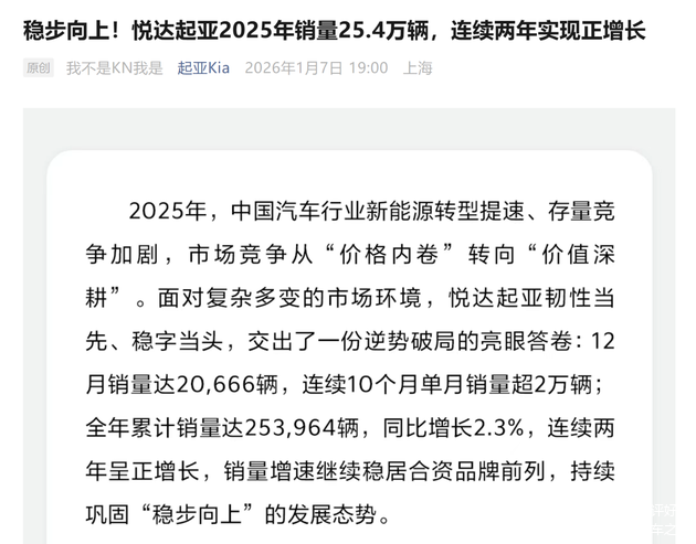 在中国市场的起亚就肩负着这个重任。从销量数据上看,2024年起亚全球销量为309万辆,其中起亚中国的年销量为24.8万辆;2025年起亚全球销量为313.5万辆,创历史新高,其中起亚中国的年销量为25.4万辆,同比增长2.3%。