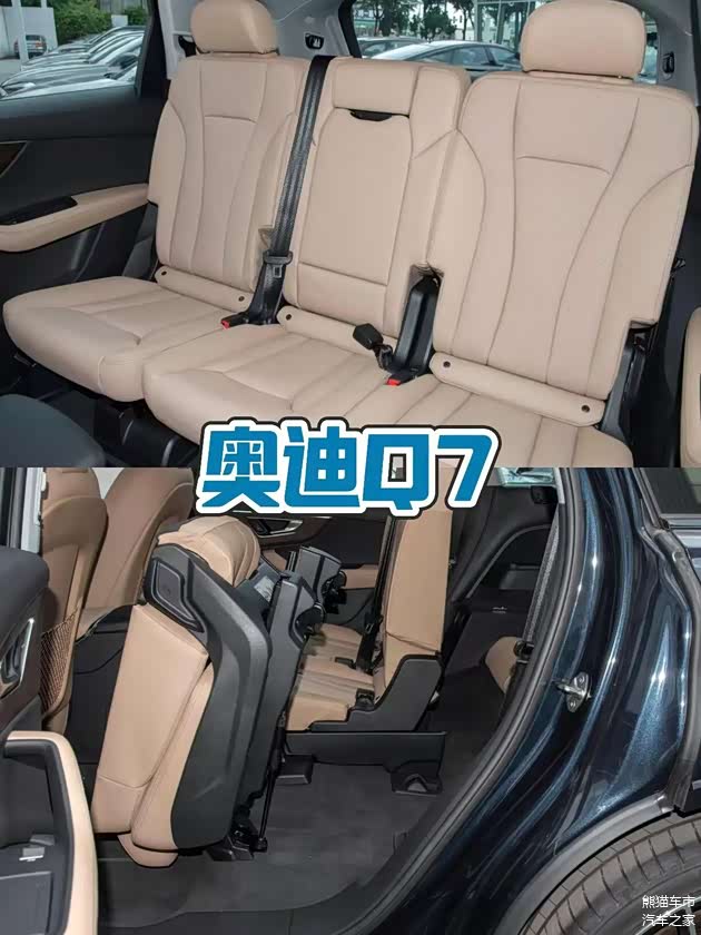 再看奥迪Q7,它的轴距为3000mm,虽然略长,但没有6座版本可选,相比沃尔沃全新XC90会略显局促。采用2+3+2的座椅布局,但第二排的三张座椅大小几乎是均分,相比之下两边座椅宽度会更窄。而通常情况下,第二排中间位置坐人的几率很小,所以这样的三座等分布局,似乎就有点欠考虑了。并且这种布局进出第三排需要调节座椅,相对会麻烦一些。不少车主也反馈奥迪Q7的后排头部空间与腿部空间略微局促,整体空间表现均衡平庸,中规中矩。