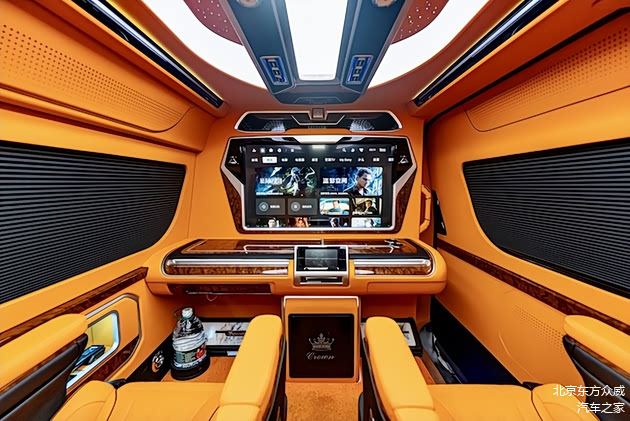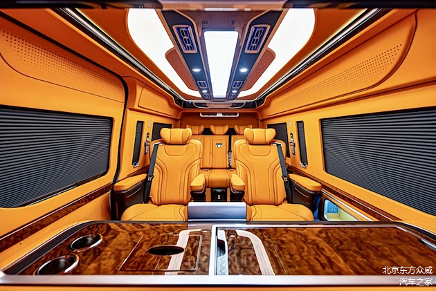 进入车内,仿佛置身于豪华游艇或私人会所,每一处细节都透露出极致的匠心。内饰用料极为考究,大量使用NAPPA真皮、Alcantara翻毛皮以及钢琴烤漆饰板进行包覆。针对不同需求,我们提供多种内饰配色方案:爱马仕橙时尚运动,波尔多红尊贵典雅,黑橙双拼年轻活力,米色温馨居家。地板材质更是点睛之笔,可选装防滑耐磨的游艇级柚木地板,或者质感温润的白色大理石纹理地板,脚感一流。此外,全车配备了多色可调氛围灯与璀璨星空顶,配合隐藏式烧水壶与豪华酒柜,将舒适与格调完美融合。