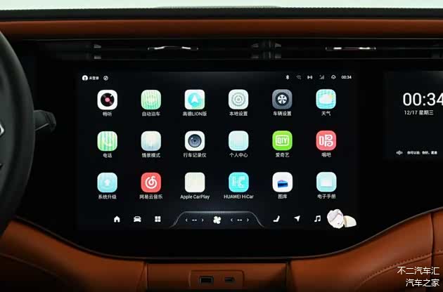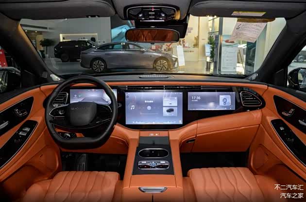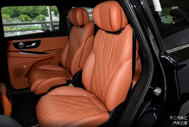 打开车门,我们看到中控区域是常见的环抱式座舱布局,T字型中控台采用大面积软包面料包覆,细密的缝线沿门板、中控区域修饰,丰富了座舱内部的层次感。除此之外,前排还能看到大面积的钢琴烤漆和镀铬元素装饰,中央区域保留实体物理按键,方向盘采用触控设计,配合中控区域三联屏来看,视觉效果档次感十足,但也因此存在“指纹”不易清理的问题。车机适配骁龙8155芯片,对于这个价位的车型来说,车机硬件算力中规中矩,且系统不支持应用生态的接入,所以一些热门车机软件无法下载安装使用,可玩性相对受限。