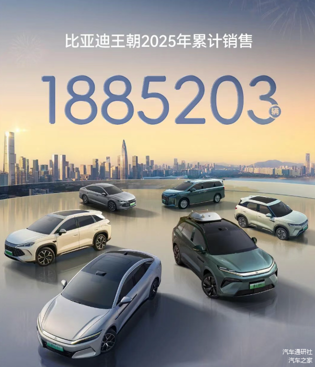 在王朝网方面,2025年累计销售了1885203辆汽车,唐家族全年销量达154908辆,汉家族全年销量达180664辆,秦家族全年销量达661090辆,宋家族全年销量达387083辆,元家族全年销量达430735辆,夏家族全年销量达70723辆。