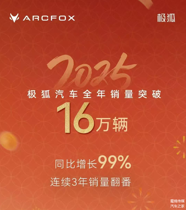 几乎与此同时,北汽蓝谷最新出炉的销量快报显示,其旗下极狐品牌在刚过去的11月,交付量已稳稳突破2.5万辆大关。12月,极狐又交出了一份优异答卷,单月售出24372辆,同比大幅增长103%。如果将时间轴拉长,这条增长曲线更显陡峭:从年初月销六千余辆,到下半年持续站稳两万五千辆以上,极狐完成这场“逆袭”所用的时间,不过一个自然年。