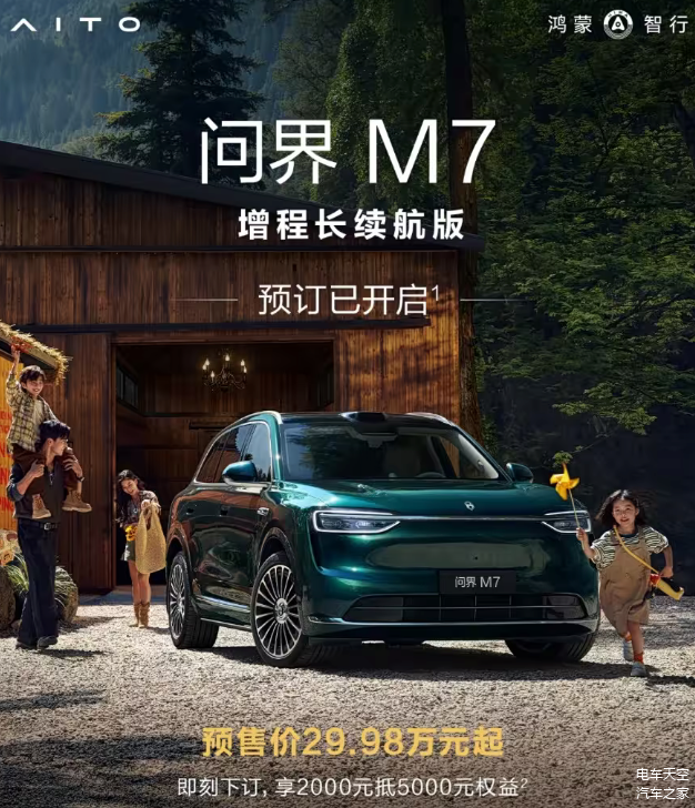 为了进一步满足多元化消费需求, 问界M7加推增程长续航版车型,并开启预定,预售价分别为Max五座版29.98万元、Max六座版31.98万元,下订可立享2000元抵5000元权益。