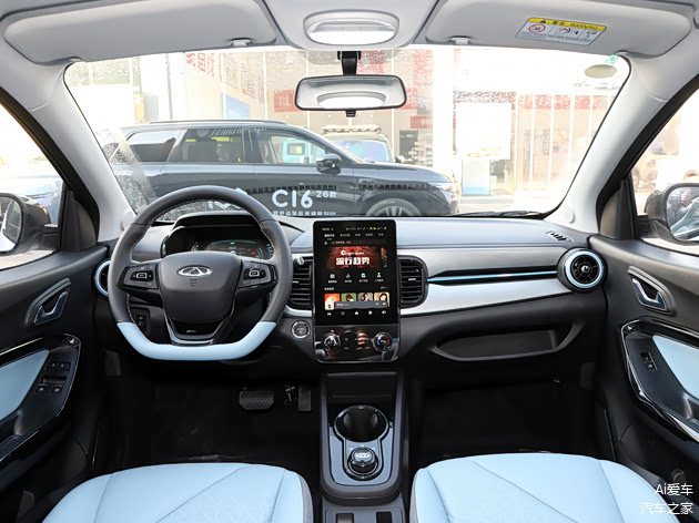 配置这次升级明显,10.4英寸竖向屏看着比老款上档次,导航信息显示面积大,操作也方便。换挡换成旋钮式设计,省出来的空间能多放点杂物,女生开车放个包放个水杯都更顺手。8字形液晶仪表显示清晰,电量、时速这些关键信息一眼就能看到。车标从奇瑞字母换成QQ标识,辨识度更高,也算是奇瑞新能源独立出来的一个信号。