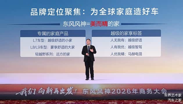 在大会上,东风风神进一步深化“智慧家享主流汽车品牌”精准定位,坚定“为全球家庭造好车”品牌理念,并公布2025年业绩报告和2026年新产品规划,同时透露在未来品牌、渠道和技术方面的信心基础与核心方法论,全面构建起品牌、合作伙伴与用户的多方共赢生态。