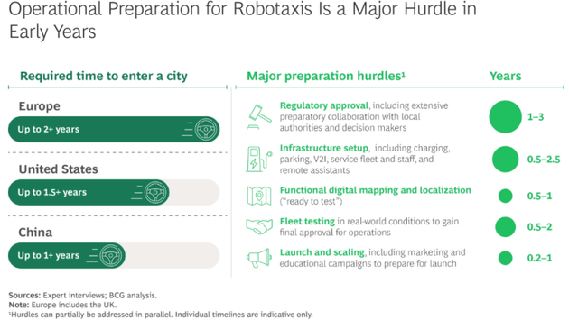 BCG指出,2035年将成为Robotaxi规模化关键节点,中美将成为全球核心市场,欧洲因监管和成本问题进展缓慢,潜力与不确定性并存。