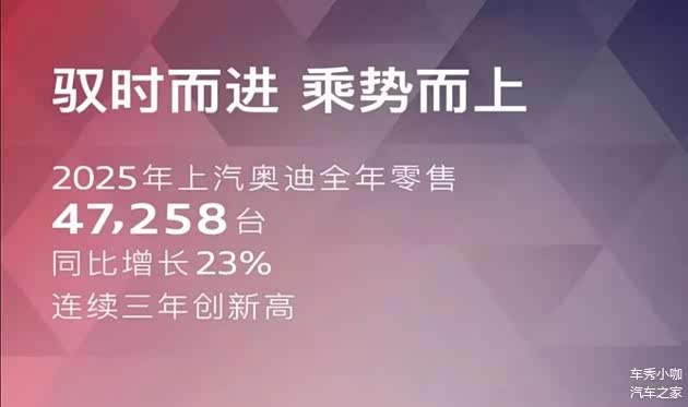 数据显示,一汽奥迪2025年全年中国市场销量为57.01万辆,同比下滑6.1%。而上汽奥迪2025全年零售总量47258辆,同比增长了23%。