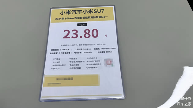 1、SU7 Max版,表显里程1.7万公里,2024年12月上牌,指导价29.99万元,现在一口价23.8万元含上户,相当于降了6.19万元。