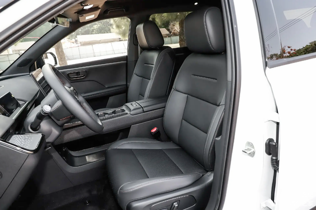 从内饰中看,银河E5采用了非对称装饰设计,主驾一侧会带有半包围装饰结构,软包覆盖面积更大。除了10.2+15.4英寸双屏,还配有13.8英寸HUD抬头显示,在娱乐上带有支持WANOS全景声的16扬声器音响、在舒适上有前排加热/通风/按摩功能,副驾更有腿托支撑,全面性做得很不错,可直接感知到的规格也比较高。