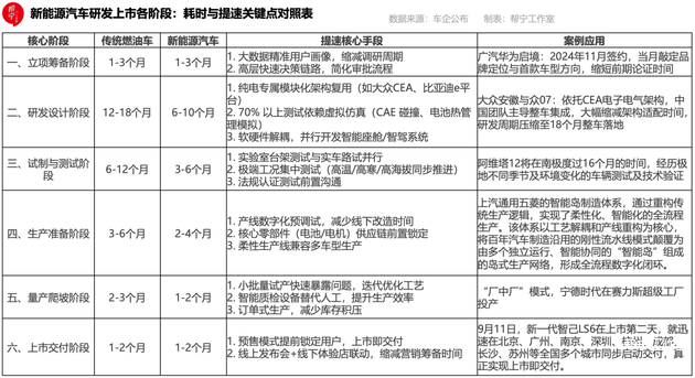 其中,研发设计阶段的6-10个月,是决定车型核心竞争力的关键环节,也是当前行业压缩研发周期的主战场。尽管它在6关中耗时最长,但对比燃油车,已足足缩短一半。