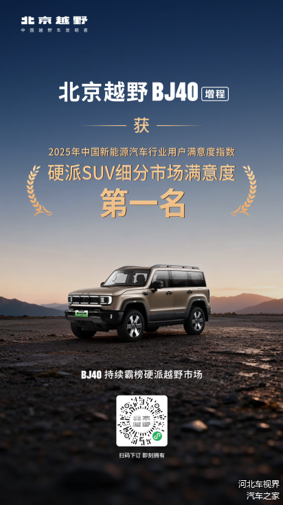 这份成功,也获得了权威品质机构的印证。在中国质量协会2025年新能源汽车用户满意度指数测评中,BJ40增程荣获硬派SUV细分市场用户满意度第一。同时,北京越野品牌也获评 “市场质量信用AAA企业”。销量与口碑的双重认可,让来自国家殿堂的荣誉,在用户端得到了扎实的回响。