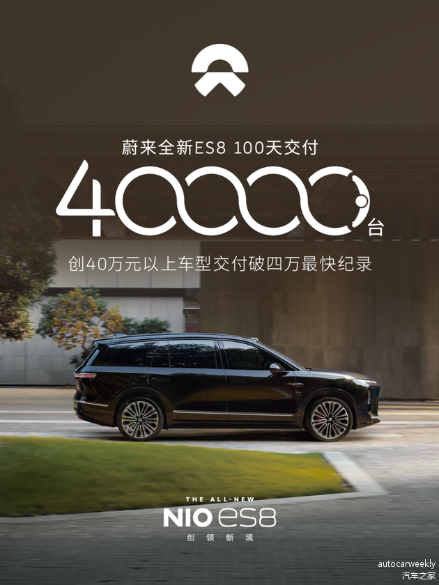 看上去,蔚来产品销量曲线的飙升“快”到让人难以想象。去年12月,全新ES8的零售量达到22258辆,不仅成为了大型SUV品类的销量冠军,也是40万以上所有车型中的销冠。同样也成为40万元以上不分能源形式,交付最快破四万的车型。