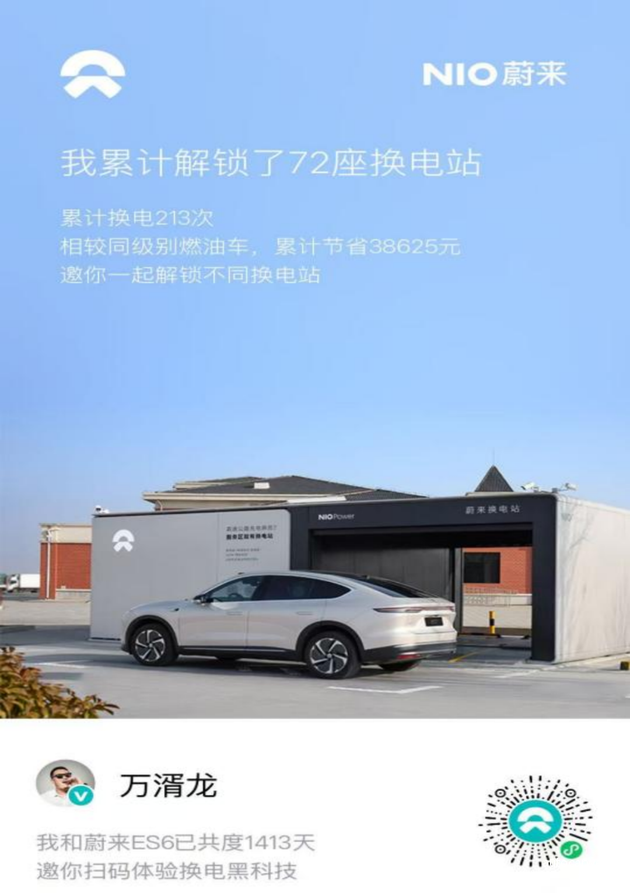 打开蔚来APP的时候才发现,自己过去5年已经换了213次电,而用充电桩充电的次数,只有28次。