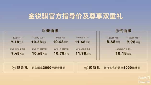 金锐骐是为新时代实干家量身打造的全能伙伴,以三大核心实力重塑皮卡价值标杆:它是同级别“更经济”的皮卡,是行业“更能装”的皮卡,还是上山下乡“更皮实耐造”的皮卡。