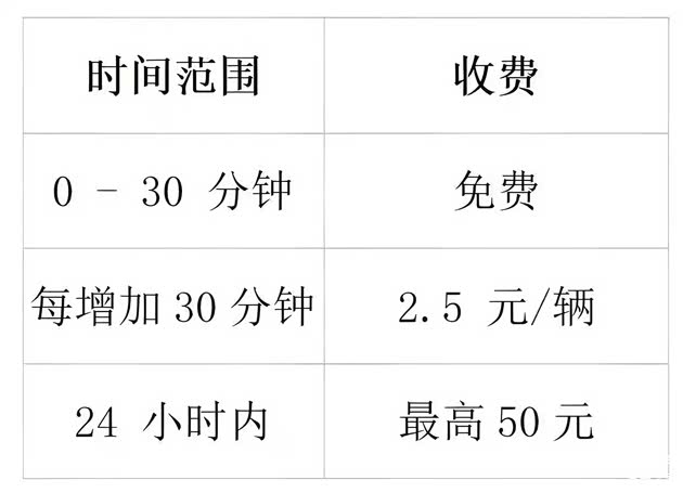 免费时段:车辆进入停车场30分钟内(含30分钟)免费停放。