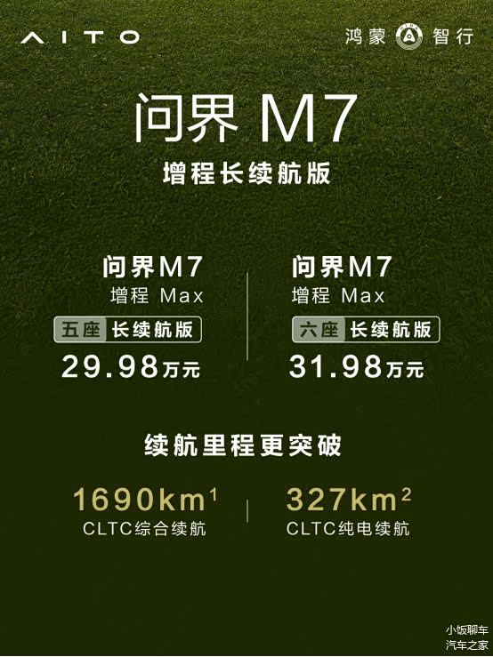 与百万里程碑同步亮相的全新问界M7增程长续航版,以29.98万元起的亲民售价正式上市。其中五座长续航版售价29.98万元,六座版31.98万元,并推出至高60000元的购车权益。
