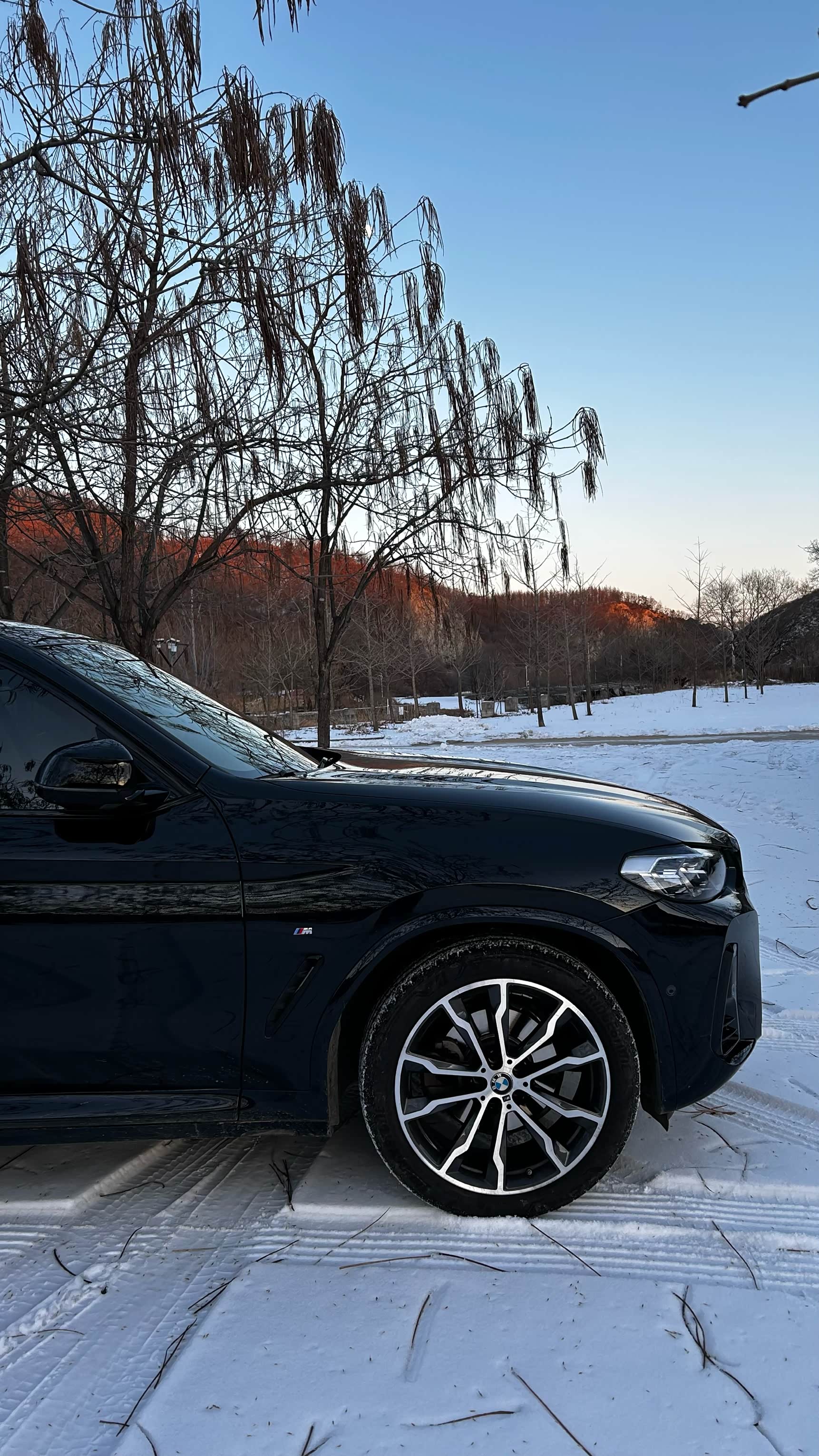 这是2023款改款,炭黑外观,火山红内饰。始终觉得这个颜色选择非常明智,很酷。车前脸比较传统,车头修长,车身比例看着非常协调,总的感觉很经典,很耐看。和现款新车各有千秋。