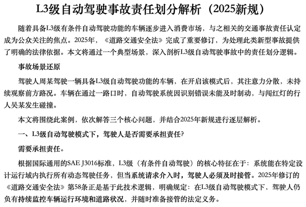技术的黎明已然破晓,但照耀前路的,必须是“责任”这枚太阳。L3的真正降临,不在于功能参数的堆砌,而在于是否有一位敢于站出来的“背锅侠”。