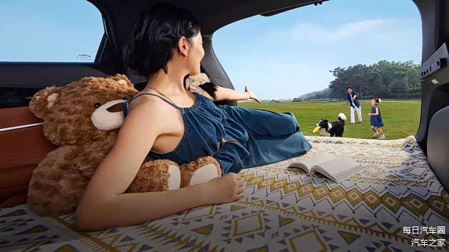 实测中,全新博越的后排放倒功能令人眼前一亮。仅需简单操作,后排座椅即可完全放平,纵深达1930mm的空间瞬间变身1.9米"移动大床"。三位身高1.9米的体验者并排躺下,腿部无需蜷曲,头部、肩部空间均感充裕,即便是夜间露营或午间小憩,也能提供接近家用床的舒适感,彻底解决了户外临时休息的痛点。