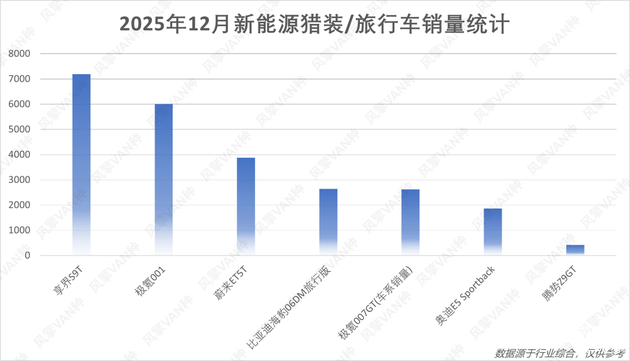 2025年12月销量数据已经发布,新新北极熊根据行业综合销量数据统计了2025年12月新能源旅行/猎装车销量。