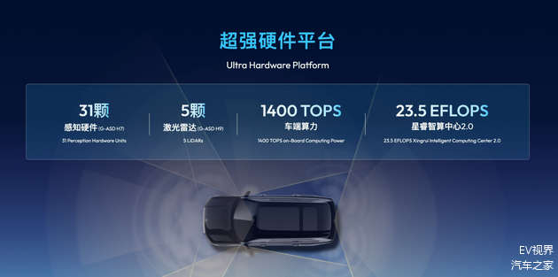 搭载WAM模型的千里浩瀚G-ASD辅助驾驶系统,在安全层面实现了质的飞跃。硬件上,标配5颗激光雷达+31颗感知元件,形成3重360°全维感知覆盖,配合双Thor芯片的1400TOPS算力,就算在暴雨、大雾等恶劣天气下,也能精准识别150米内的行人与车辆,识别精度达99.9%。