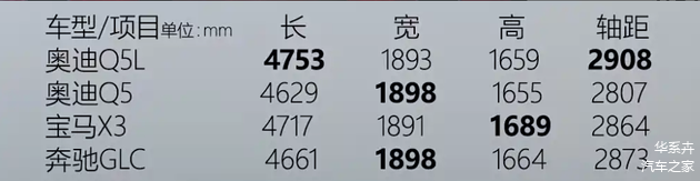尺寸空间进一步优化,轴距加长至2945mm,车身尺寸达到4842/1900/1660mm,领先于宝马X3和奔驰GLC的国产长轴版;