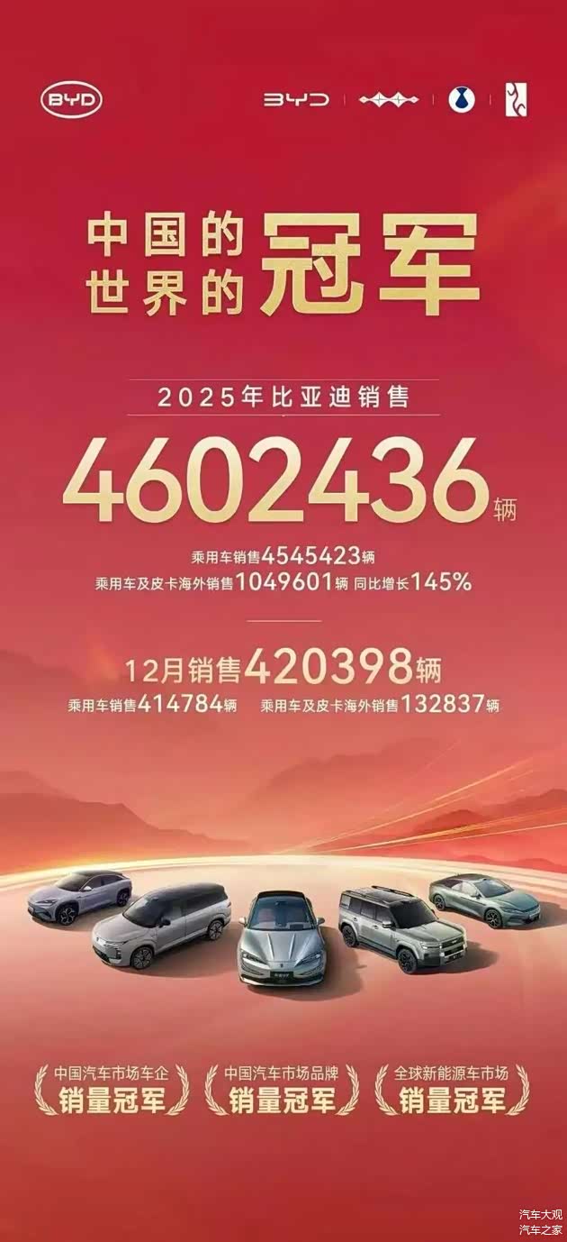当比亚迪以全球纯电销冠的身份站在2026年的新起点,其目标已不再是超越单一竞争对手,而是成为真正的世界级车企——一个具备全球技术话语权、全产业链影响力、全球品牌认知度的汽车产业领导者。
