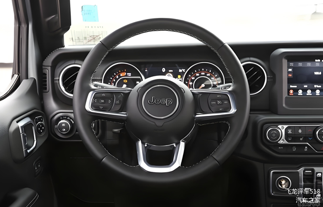 进入车内,Jeep牧马人85周年纪念版车内采用棕色的翻毛皮材质的包裹,再加上黑色真皮材质以及银色镀铬装饰,质感柔软细腻,做工精致、用料考究。标准的T字形中控台配备了12.3英寸的液晶仪表和14.5英寸的中控屏,这也是Jeep品牌使用过的最大尺寸屏幕。操控岛配备了无线充电模块,还加入了大颗粒按键,保留了经典的旋钮式换挡机构,还有黑色的滚轮设计,侧面还有两个标准的杯架。搭载了Jeep Uconnect 5信息娱乐系统。车内配备了黑色皮革材质和格子纹路衬布的交替混搭材质,与高尔夫GTI十分相似,也提升了整车的独特性。