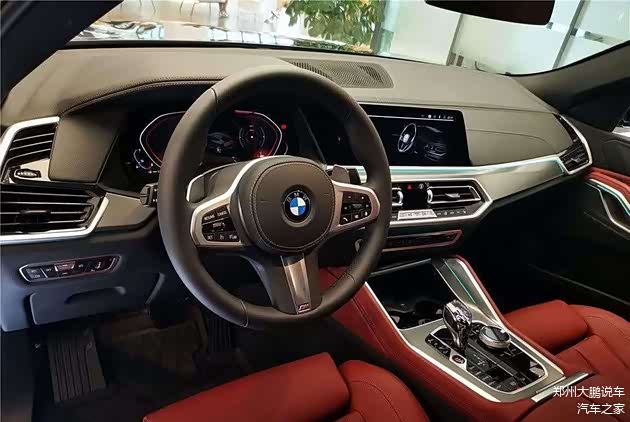 内饰方面,与X5保持一致的设计,配备12.3英寸全液晶仪表盘和12.3英寸中控屏。中控台宽大舒适,方向盘和座椅均采用真皮材质,车内大量使用木纹饰板和软质真皮。宝华韦健音响为可选配置,原厂配备12个扬声器,行李厢提供12V电源。