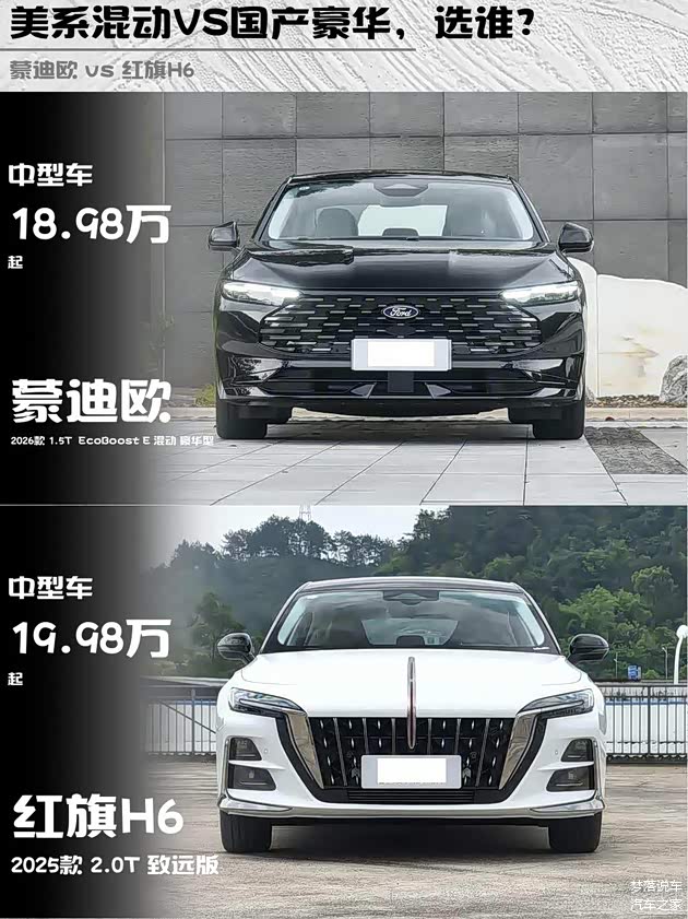 最近后台好多人在问:20万预算买混动B级车,蒙迪欧2026款 1.5T EcoBoost E混动豪华型和 红旗H6 2025款2.0T致远版怎么选?作为深度试驾过两台车的车主,掏心窝子分享真实对比感受👇