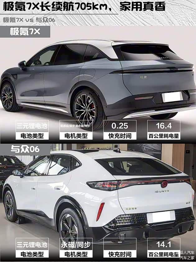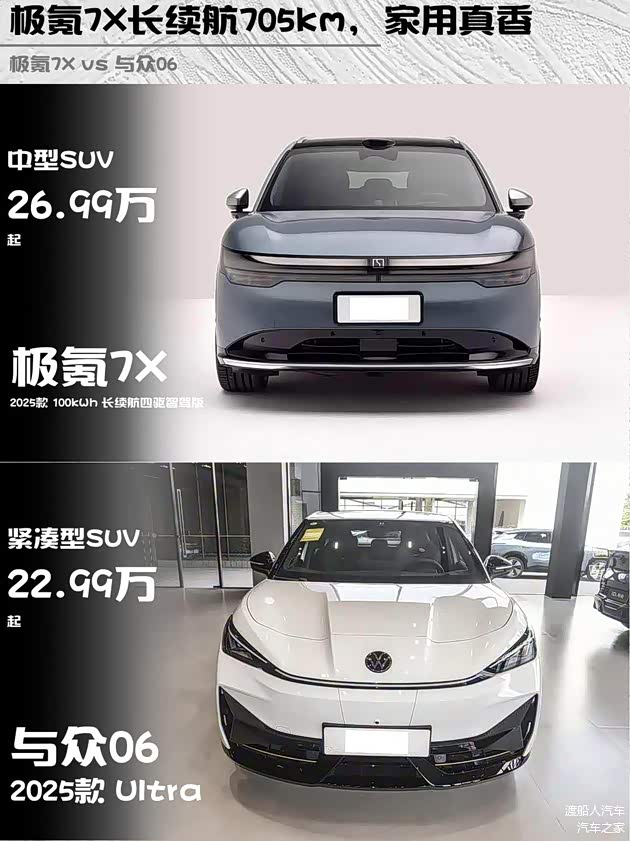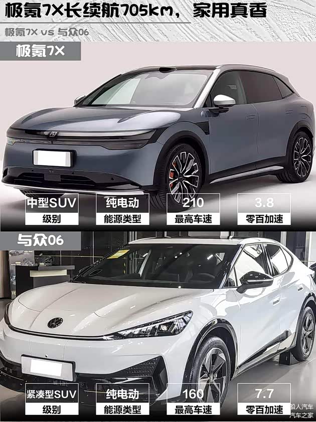 总结:要性能选极氪7X(26.99万),要个性省电选与众06(22.99万)。极氪适合追求驾控的硬核玩家,与众06更适合城市通勤的颜值党。你们会pick哪款?