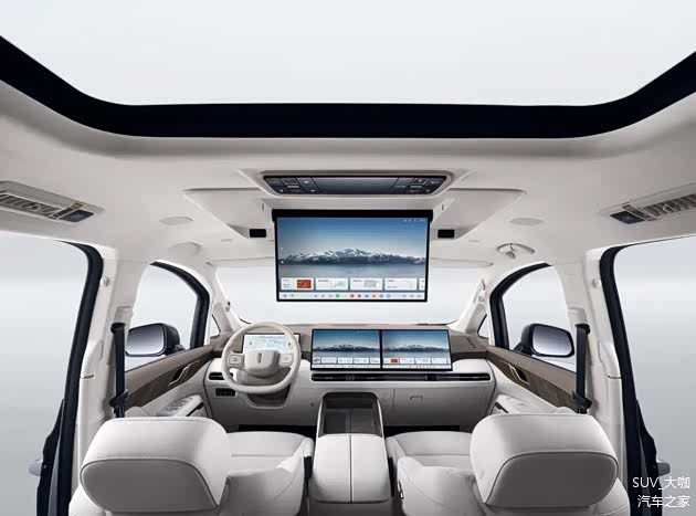 此外,新车智能化也大幅提升,前排中控屏与副驾屏均为双15.6英寸2.5K屏,配备Coffee OS 3系统以及8295芯片,另外还配备12.3英寸仪表盘、26英寸SR-HUD抬头显示以及17.3英寸3K超高清后排娱乐屏,并可以通过语音、手势、触控等方式实现五屏交互。