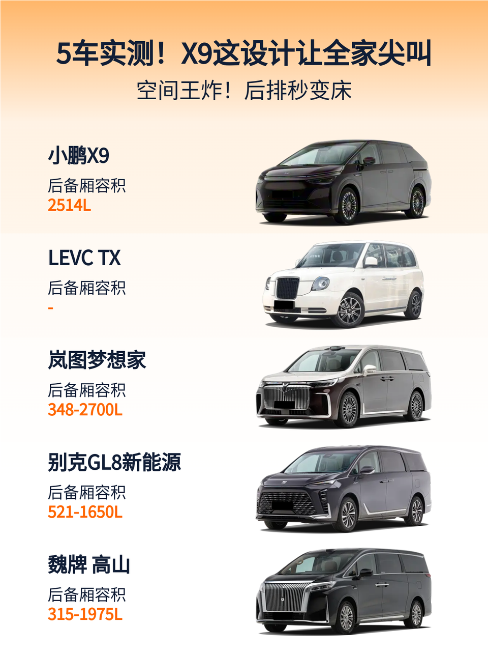 LEVC TX的商务座椅完全不能放倒,露营装备只能堆在过道;岚图梦想家三排地板有斜坡,睡袋老是往下滑;GL8新能源后备箱台阶太高,搬行李差点闪到腰;魏牌高山第三排不能折叠,大件物品根本塞不下…直到试了小鹏X9 2026款增程1602 Max,一键电动折叠直接变2514L纯平空间!帐篷、烧烤架、折叠车统统搞定,165mm中央过道孩子跑来跑去超方便✨