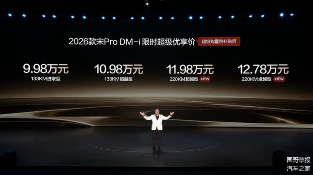 最近有朋友私下问我,十来万预算想买辆省心、能装、还不怕跑长途的家用SUV,有啥推荐?我直接甩了张图过去,刚上市的2026款宋Pro DM-i 220公里长续航版,购置税补贴后售价9.98万起,如算上置换补贴,价格还能进一步下探。他回了一串问号:“???十万块,纯电能跑两百多公里?比亚迪这是把‘价格屠夫’的剧本又演了一遍?”