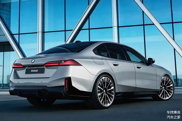 至于说车尾,宝马5系在渲染版本中扩大了运动包围的包覆范围,黑色装饰结构的扩展能进一步优化防刮蹭效果或通过性。而且与前脸相呼应的纵向后导流会产生比较特别的下侧分层,样式上会让人想到一些高性能车的宽体套件,只是它不会那么激进。另外,这里的尾灯其实也有一些小心思,在取消插入式金属条的同时,红色撞色的灯腔看上去更具运动感,而且顶部的纵向短光带设计会有类似宝马M系运动标识的效果,这跟当下宝马正在进行的细节元素改造保持了一致性。