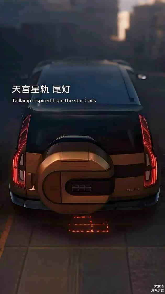 车辆前大灯设计灵感源自古代“浑天仪”,尾灯则勾勒出“天宫星轨”图案,将中国传统文化元素融入硬派设计语言。