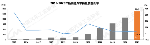 回看2025年,行业仍处于高增长收尾期:全年产量3453.1万辆、销量3440万辆,同比分别增长10.4%和9.4%,连续17年蝉联全球第一,且销量超年初预期。