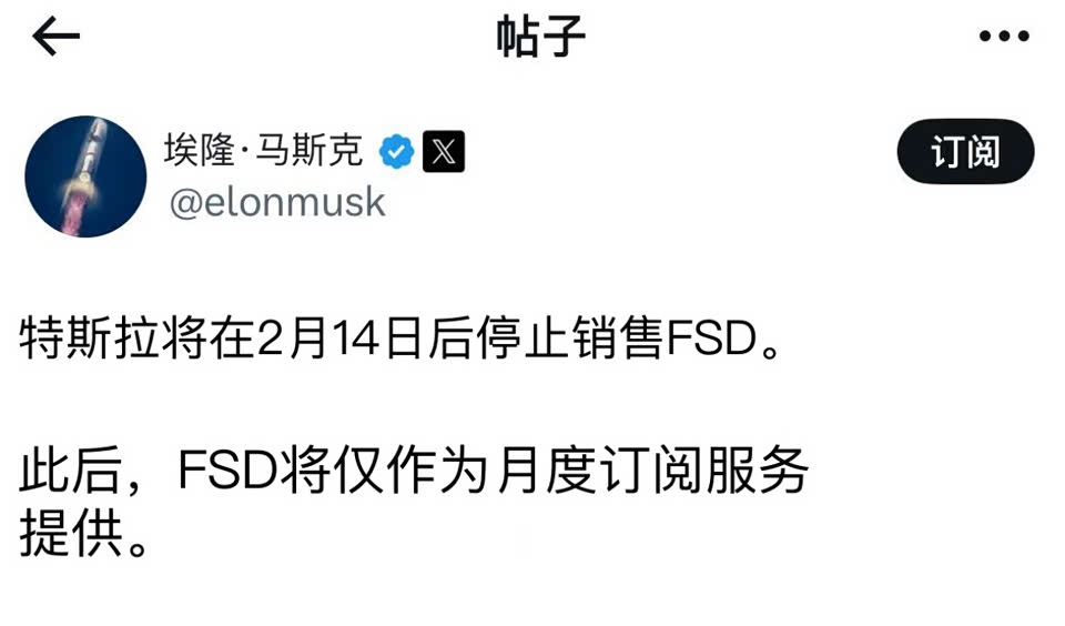 特斯拉FSD将停止买断销售,未来将按月付费