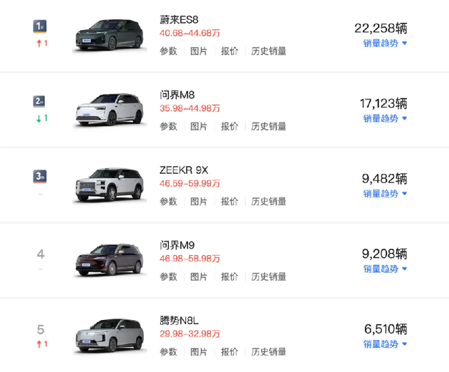 虽然占据着先发优势,然而这两年一系列以“9”命名的旗舰车型密集登场,问界M9、极氪9X、腾势N9、理想L9等旗舰SUV密集登场,无不瞄准了高端家庭用户与商务人士。然而,随着越来越多的车企推出尺寸更大、配置更高、定价也更具策略性的产品,格局正被迅速重塑。市场竞争的激烈程度已到寸土必争的地步。