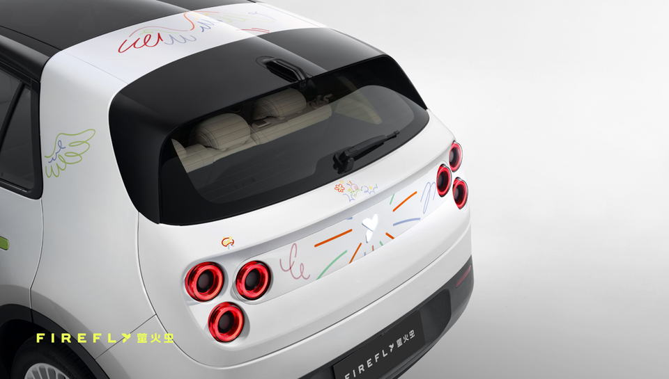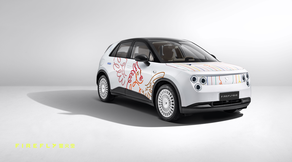 据悉,该车型是firefly萤火虫在马年新春为用户打造的限定珍藏版,车身艺术家亲笔签名标识,并提供独一无二的NFC卡片钥匙以及配套彩绘家充桩。新车特别地方在车身拉花,以白色车身为灵感画布,用多彩线条设计手绘风格拉花,融入了带着翅膀的天马以及蜗牛、花朵等春日元素,车尾则有礼花图案,搭配纯白漆面的昼白拉力风合金轮圈,整车看上去相当的明快。