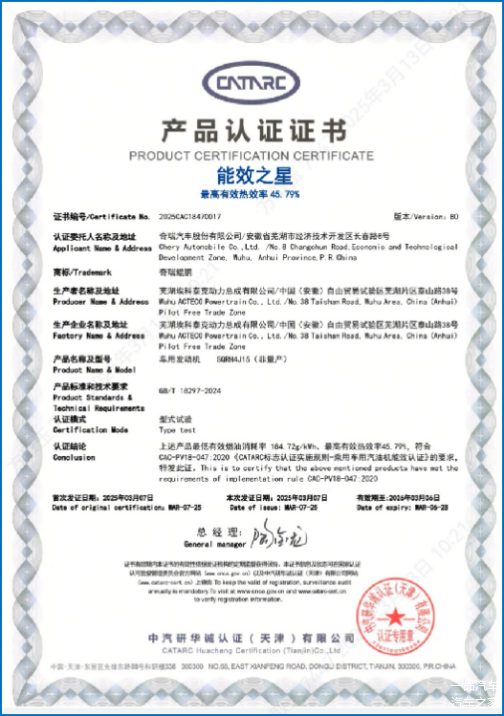 在市场热销的同时,风云A9L的技术实力也获得行业权威认可,所获奖项全面覆盖动力、操控、安全等核心维度,每一项认证都精准贴合用户用车需求。动力能耗层面,其搭载的奇瑞鲲鹏超能电混CDM系统以45.79%最高热效率斩获“能效之星”认证,全栈自研的鲲鹏天擎混动专用发动机(实现了全球领先的48%热效率)更入围中央广播电视总台第六届《汽车风云盛典》。对用户而言,这意味着日常通勤用电成本极低,长途出行无需频繁补能,彻底告别里程焦虑与高油耗压力,全场景用车都更经济省心。