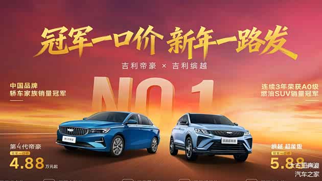 近日,吉利中国星系列推出新年限时优惠活动,第4代 帝豪4.88万元起、缤越超能版5.88万元起。