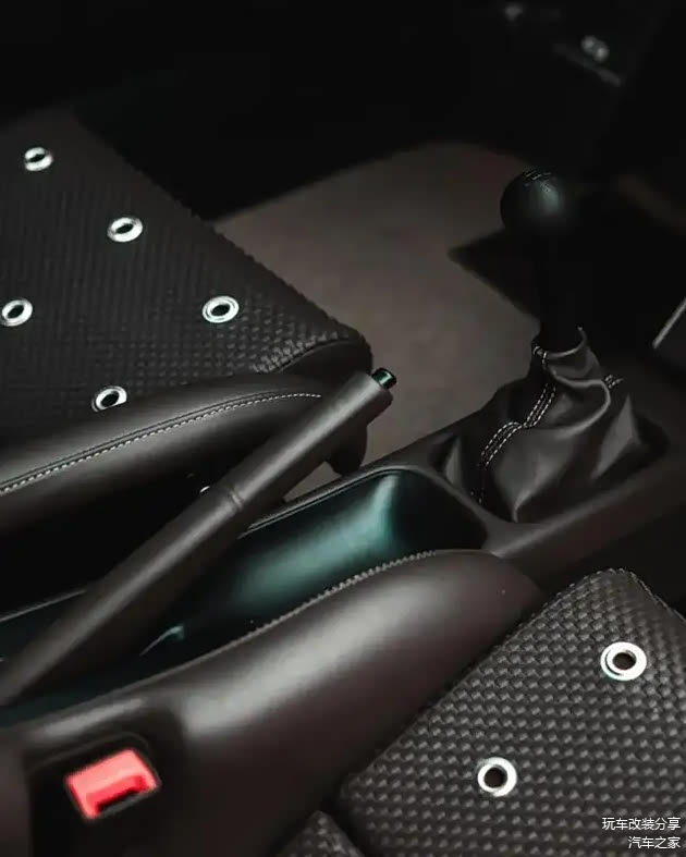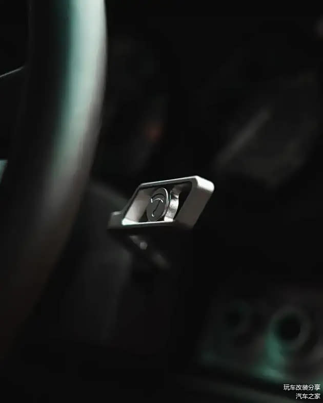 大量内饰零件采用铝合金重制,包括踏板、开关按钮和定制的手机支架。
