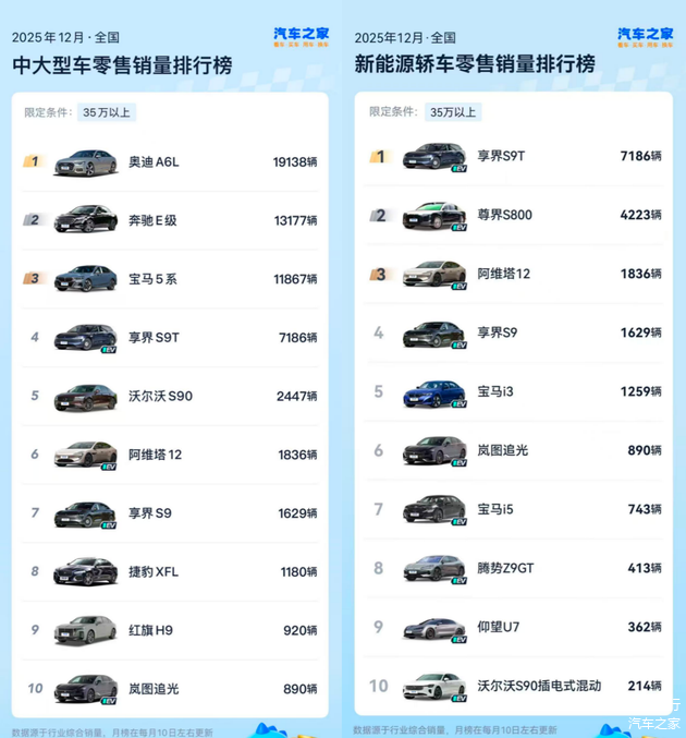 近日汽车销量公布,享界品牌以8815台的零售销量,强势闯入35万元以上中大型豪华车市场核心圈层。这一数字不仅刷新了品牌自身销量纪录,更标志着中国高端汽车市场格局正经历一场深刻重构,曾经的BBA或将变为SBBA。曾经由奔驰E级、宝马5系、奥迪A6L(即“56E”)牢牢掌控的豪华轿车高地,如今被享界撕开一道口子。享界S9T已连续三个月稳居细分市场前四,并且终端成交价持续走高,大量用户来自BBA车主的增换购,这已不是简单的市场渗透,而是一场价值体系的颠覆。
