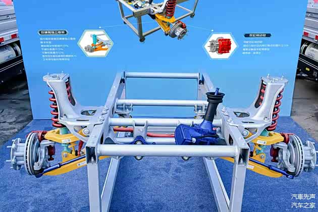 在操控与安全方面,产品首次采用双横臂独立悬架与P-EPS电动助力转向系统,兼顾操控灵活性与行驶稳定性。行业首创的双缸制动钳,提升了山区长下坡等复杂路况下的制动效能。配合直通式高强钢大梁、加强型大速比后桥和5+2加强型板簧,提升起步动力性的同时,确保了重载工况下的车身强度与货物安全。此外,车辆配备的ESC+TCS+HAS+HBA+EPB+Autohold+AEB等主动安全配置和照射距离较普通微卡提升60%的LED大灯,全方位、全天候为卡友保驾护航。