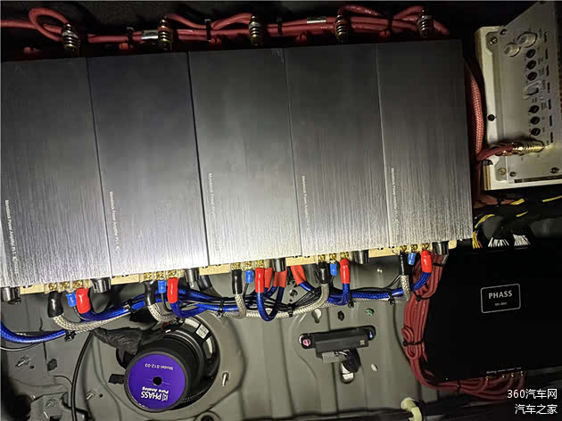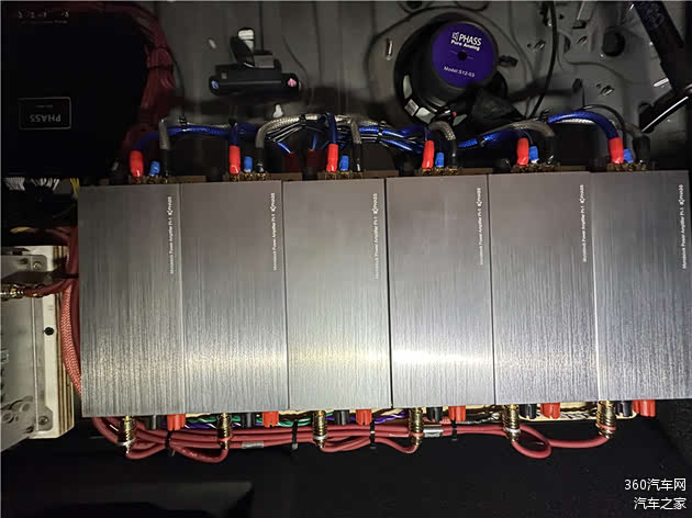 驱动三分频喇叭的是六台妃仕PI单声道功放,每路信号都得到独立、纯净的放大,确保喇叭的全力发挥。所有功放吊顶安装于尾箱顶板,不占用尾箱空间,实现了性能与美观的完美结合。