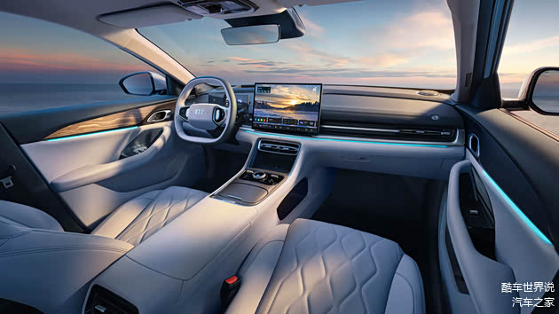 步入座舱,「山水合院」环抱式格局将东方哲学中的“叠山理水”思想化为现实。仪表台与门板线条如层峦叠嶂般环抱乘客,营造出静谧、安全的归属感。其中最点睛的设计,莫过于「三潭印月」悬浮音响,三个高音单元如西湖中的石塔般,轻盈悬浮于仪表台“水面”之上,与氛围光影交织,仿佛能听见光与影的摇曳声响。这套设计不仅是一场视觉盛宴,更旨在为用户打造一个可移动的、承载中式雅致生活理念的“第三空间”。