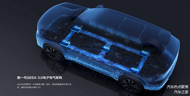 实现这一跨越的关键,在于GEEA 3.0电子电气架构的全面应用。该架构将传统分布式的多个控制器高度集成,如同为车辆安装了“中央超级大脑”。这不仅大幅提升了系统协同效率,更带来了千兆级的数据传输速度,使得车辆能够实时处理海量传感器信息,并支持全域功能的极速无感升级。架构的革新,为高阶智能功能的落地铺设了至关重要的高速公路。
