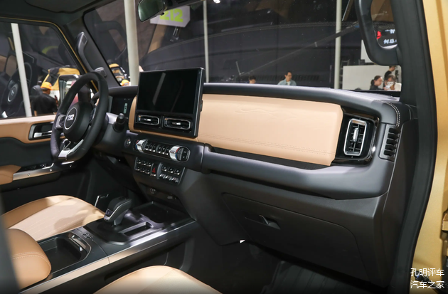 车内台面上已经配了12.3英寸中控车机大屏幕,现在上手操作智能化体验还算可以,而且细节上并没有砍掉所有的传统控制按钮,尤其是驾驶模式越野模式的切换比较方便。